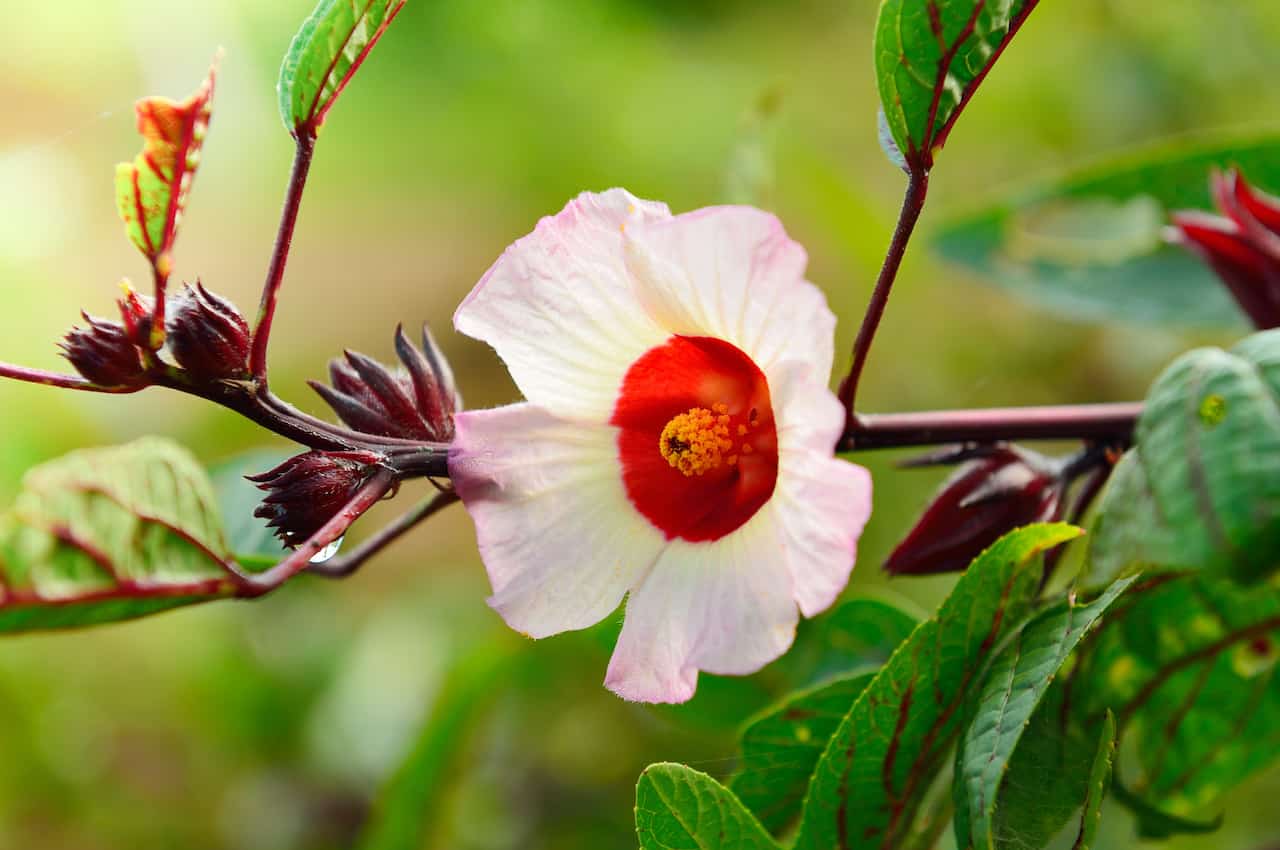 The edible variety of Hibiscus is known as “Roselle” and is well known for its medicinal and culinary uses. The flowers can be eaten raw but are mostly used in herbal teas, jams, and salads.
